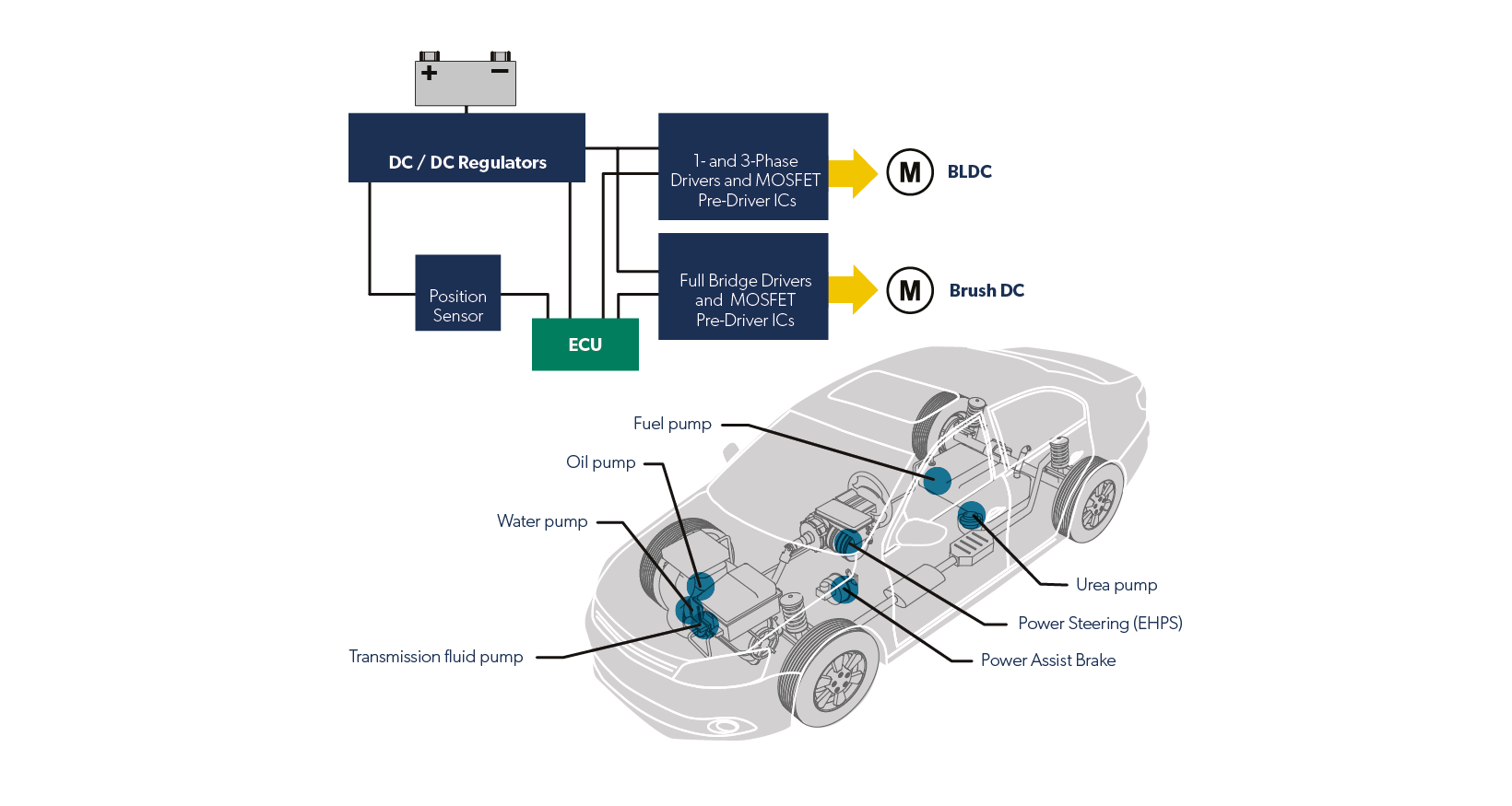 Drive performance in automotive pumps with Allegro’s full lineup of brush and brushless motor drivers, current sensors, and position sensors.