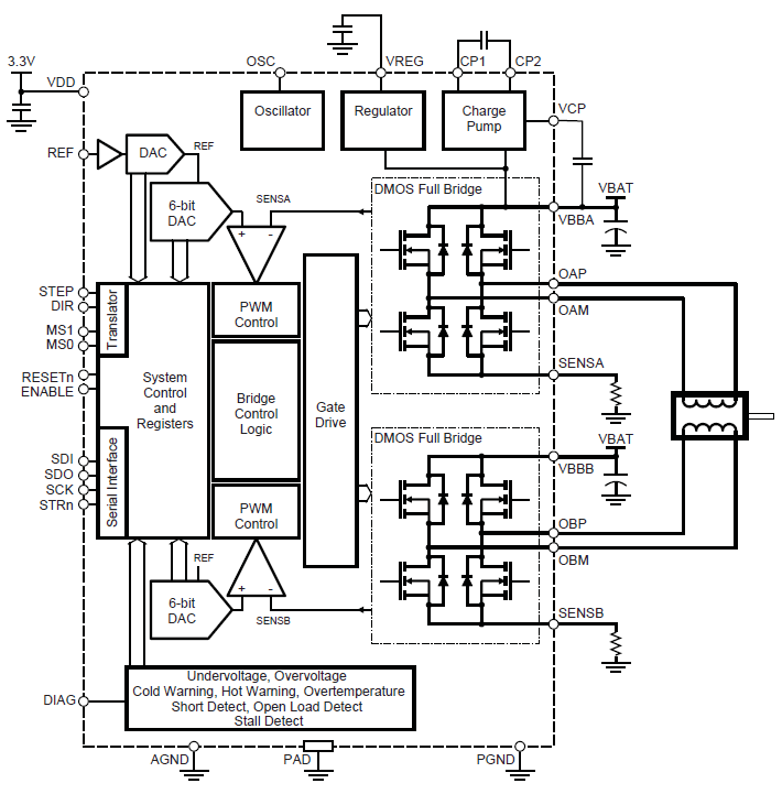 The A4980 offers a flexible and programmable solution for automotive stepper motor control, featuring SPI control, programmable current regulation, and diagnostic read-back.