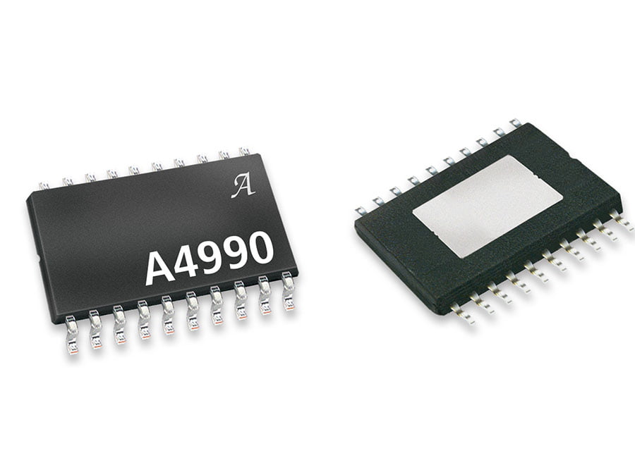The A4990 provides versatile motor control for automotive applications, driving stepper or brush DC motors with full current and offering brake capability.