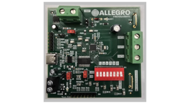 The APEK89110 is a full-featured evaluation board for the A89110, an AEC-Q100 qualified 3-phase gate driver for automotive motors. It provides an easy-to-use solution for testing the IC's wide 4.5 V to 40 V operating range, programmable gate drive for EMC control, and integrated diagnostic features via SPI.