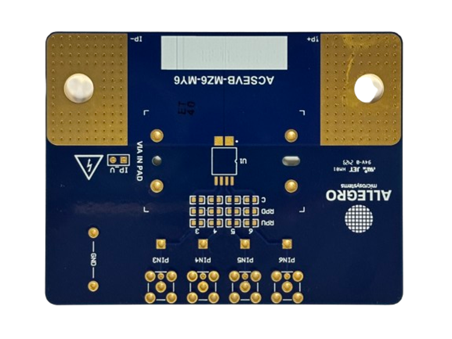 This bare evaluation board offers a method for evaluating Allegro current sensors in a lab environment. This MZ/MY current sensor evaluation board (ACSEVB-MZ6-MY6, TED0004281) is intended for use with any MZ-6 or MY-6 package (6-pin fused-lead SOIC) Allegro Hall-based or TMR based current sensors.
