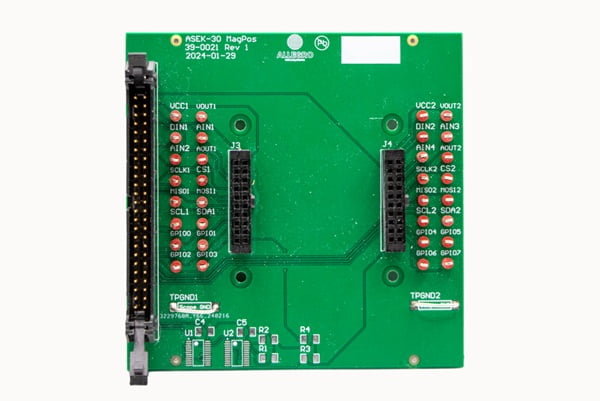 The ASEK-30-INT-MPS-001 is the interface board that routes the required signals from the ASEK-30 for easily accessible connections. The interface board is ideal for use with the optional socket board or with an application module that integrates the supported sensors.
