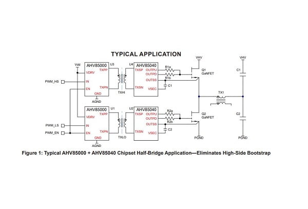 AHV85000/40 芯片组为 GaN FET 隔离式栅极驱动器提供具有高集成度和高性价比的解决方案,通过集成偏置电源消除外置电源的需求,简化系统设计。